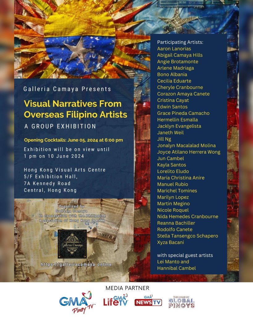 The show is organized by Galleria Camaya in cooperation with the Philippine Association of Hong Kong (PAHK). GMA Pinoy TV, GMA Life TV and GMA News TV are proud media partners of the exhibition.